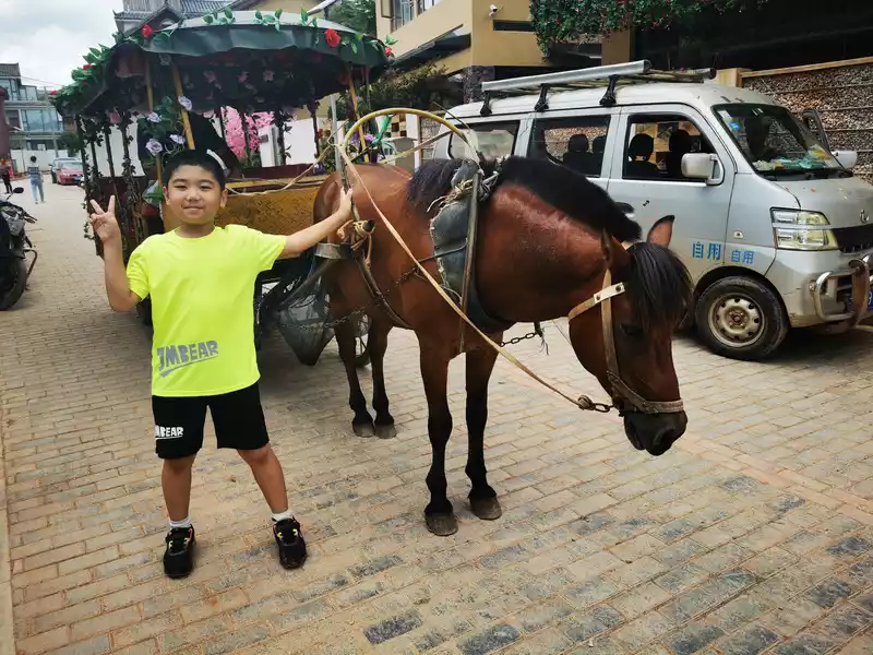 The next day, after having breakfast at the inn, the trip to Puzhehei officially began. Puzhehei Village is not large, and the main means of transportation in each scenic spot mainly rely on horse-drawn carriages and sightseeing battery cars. If you know how to ride a motorcycle, you can also rent a small motorcycle, the rent is about 10 yuan/hour, this is the price during the epidemic, I don't know if it will be expensive. Every morning there will be carriages parked at the door of various inns waiting to solicit customers, the price is 10 yuan/person, no matter how far or near, children are not charged. In fact, the distance is very close and you can bargain, about 5 yuan/person.