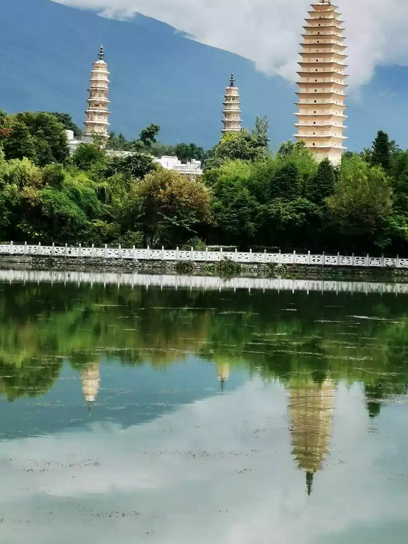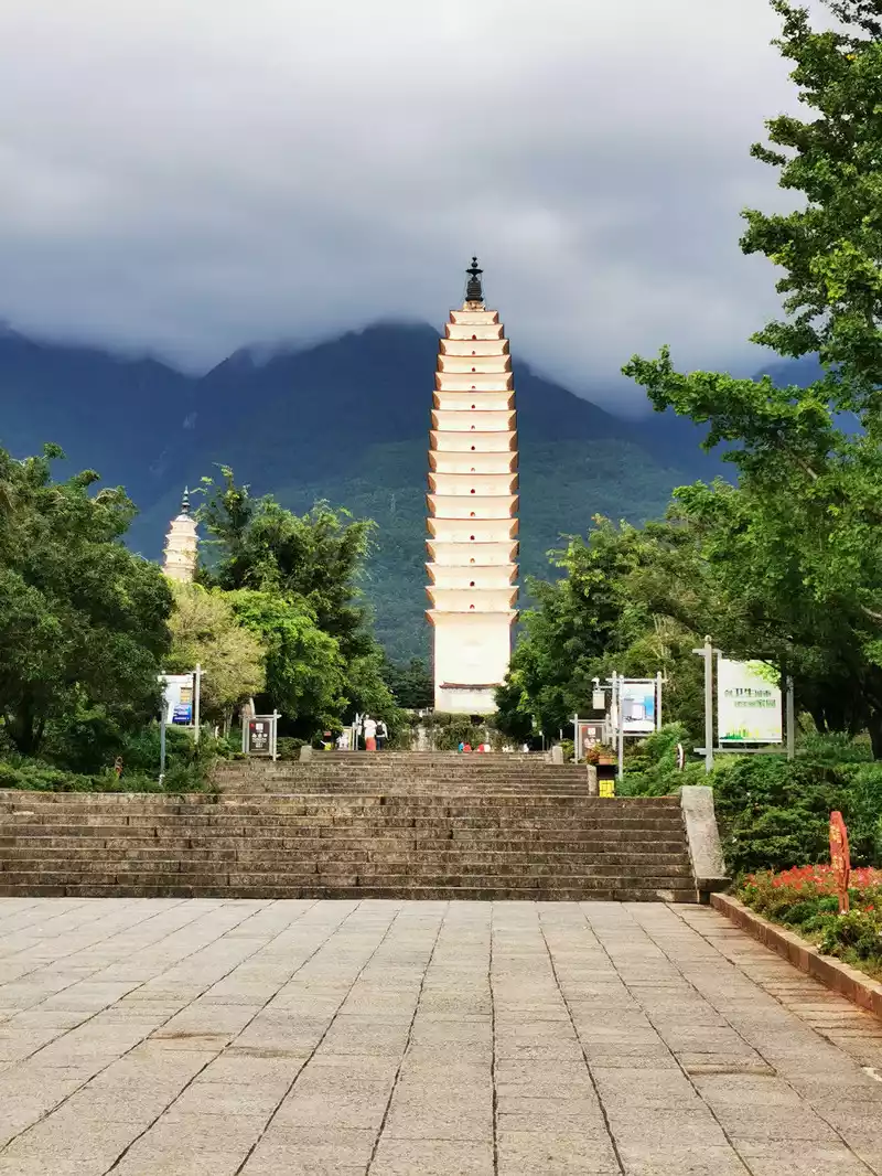 Since it was a high-speed train at 1 o'clock at noon, I visited the three pagodas of Dali Chongsheng Temple in the morning, which is also the only five-A scenic spot in Dali. There are sightseeing cars in the scenic spot, and if you are not physically fit, you can take a sightseeing bus back and forth, or you can take a sightseeing bus and then walk down by yourself. If you have good physical strength, you can walk up and down, the air inside is still very good, and you can meet squirrels. In fact, the best place to watch the reflection of the Three Pagodas is not in the Three Pagodas Scenic Area, but in a three-tower reflection park next to it, and it takes more than ten minutes to walk between the two. Tickets for the Three Pagodas of Chongsheng Temple can visit the Reflection Park, but they are not sold separately.