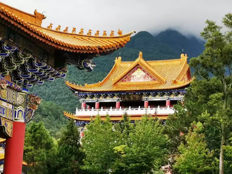 Coming down from Xishan and taking the return cable car back to Haigeng Park, it takes about 40 minutes to drive to Wu Sangui's back garden - the Golden Hall. Here we need to remind friends who drive by themselves, because we don't know that the car can drive directly to the mountain, so the navigation guide is the west gate, and you have to climb 200 steps from here, and then walk a little more to the main scenic spot. If you drive directly to the north gate, you can park your car at the entrance of the main scenic spot, which can save a lot of physical strength.