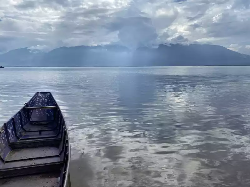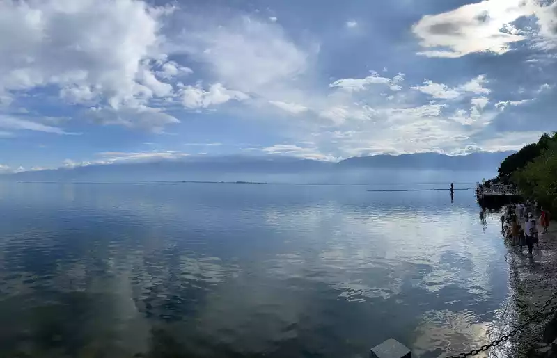 Take a boat back to Shuanglang Ancient Town, take a tour bus back to the parking lot, pick up the car, and continue to drive along Erhai Lake.