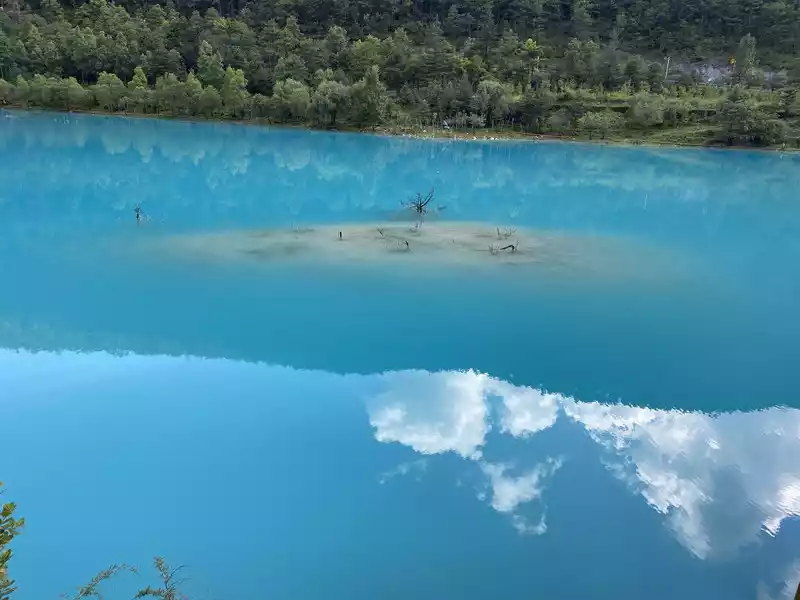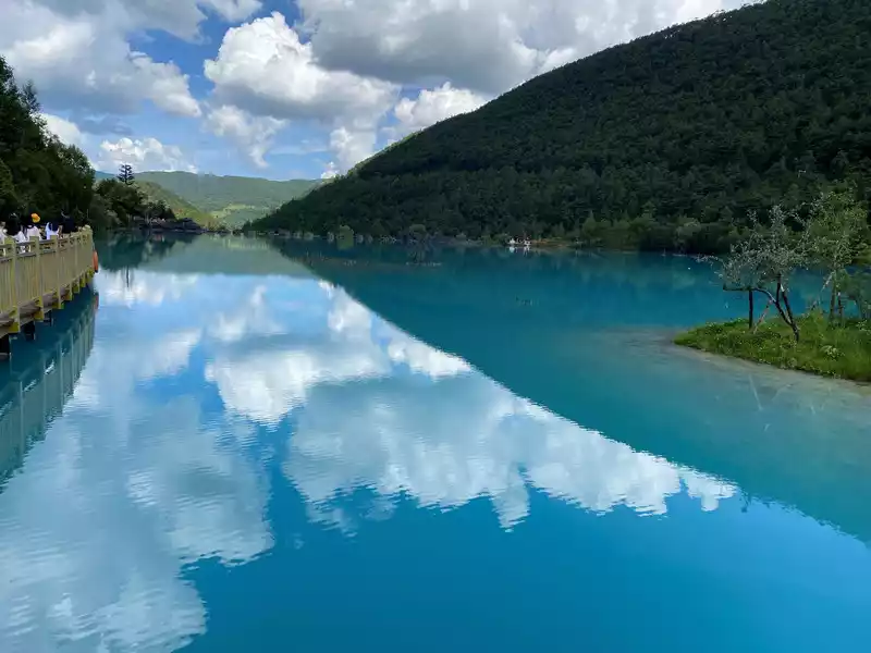 The lake water of Blue Moon Valley is like a piece of jade, refreshing.