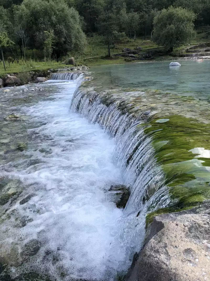All the way upstream, the lake water and waterfall are very clear and refreshing.