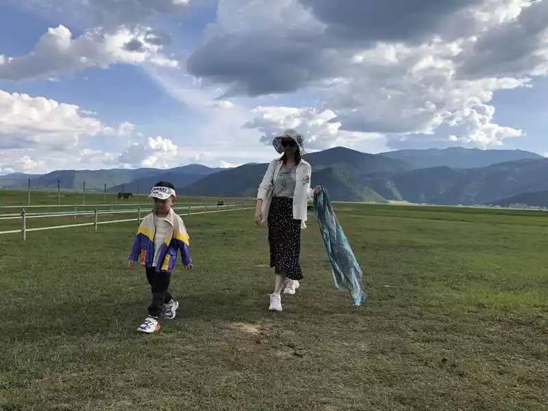 Thescenery of the Napa Sea grassland is also average, it is a grassland, looking down at the grass, looking up at the sky, my baby and I walked in, the only horses in the grassland are relatively docile, and they are not afraid of people when they get close.