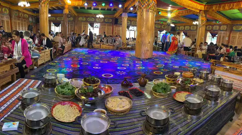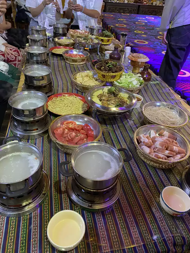 In the evening, I went to Shangri-La City to have a toast banquet, which was a small hot pot per person, tasted yak meat, highland barley wine, highland barley noodles, butter tea, and watched a little Tibetan performance. (It was also brought by the tour guide, and I suspected that I went to a Xibei goods like Napa Sea, because when I stayed in the B&B later, I saw the authentic Zha Hai family's toast banquet on the hotel wall, well~ no matter how you look at it, I feel that there is a difference.) )