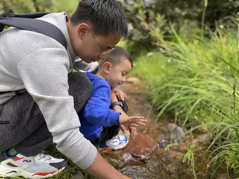 After hiking the ecological trail, I continued to take the tourist bus to the capital lake, and when I was about to go in, it rained, and I planned to wait for the rain to stop before going in, but the baby suddenly lost his temper. Just obey him and go in with an umbrella.