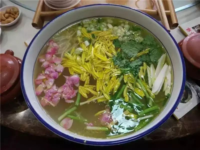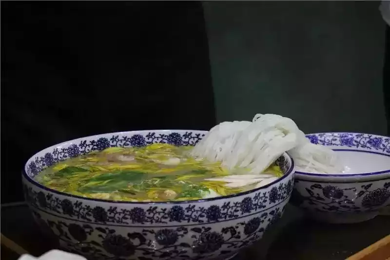 Themost ceremonial rice noodles are the rice noodles crossing the bridge. According to legend, a scholar who failed to pass the exam repeatedly, studied the small island in the center of the South Lake.