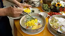According to local customs, before they get married, the gift presented to their in-laws must have a plate of carefully carved plums.