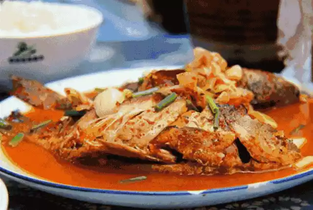 The plump crucian carp, the cold and refreshing snow water flowing down the Cangshan Mountain, the red spicy soup made by the Bai family, the authentic sour papaya, and the simmered over low heat to create an authentic hot and sour fish.