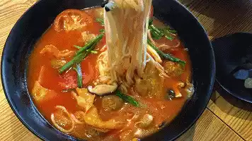 The soft, glutinous, chewy and flexible rice noodles are simmered in a small pot, casserole, or can, added to the broth and simmered for a few minutes, and then put on various condiments.