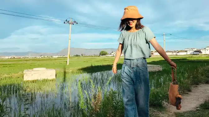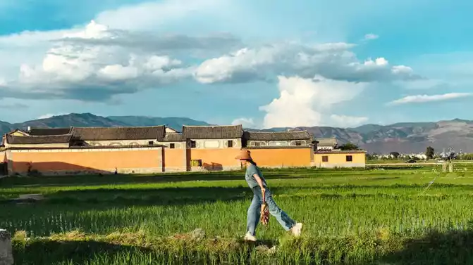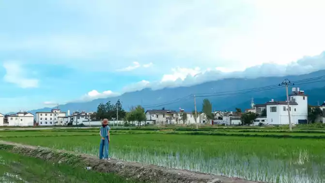 When the smoke drifts at the end of the fields under the Cangshan Mountains,