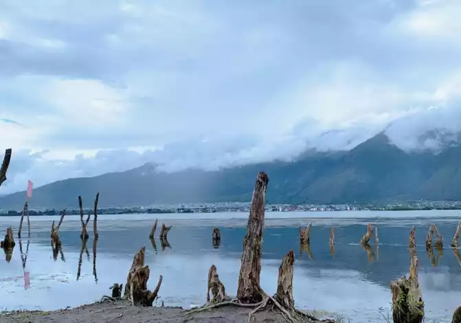 When you go around Erhai Lake, you can see three pagodas standing between Cang'er in the distance.