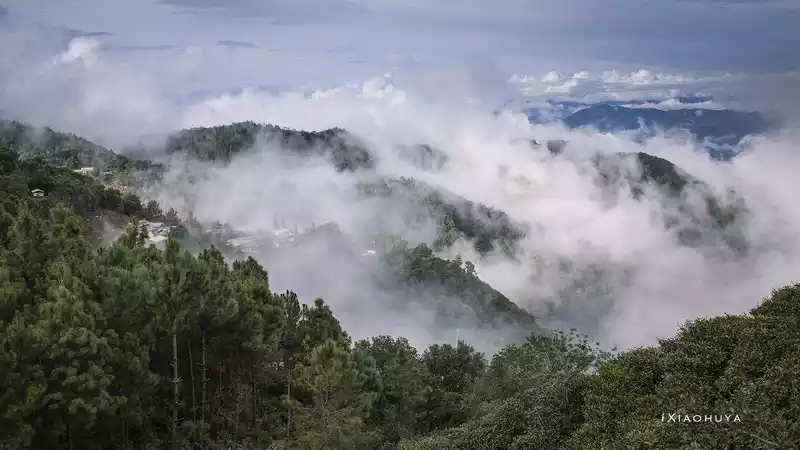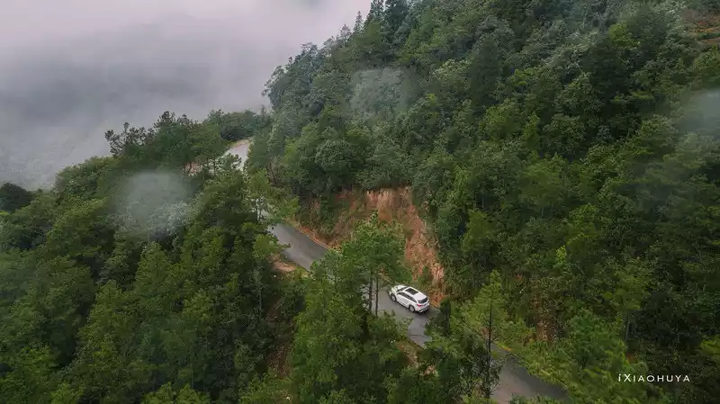 As soon as we left the county seat, the rain began to fall, and the raindrops hit us head-to-head, which had the momentum to stop us from continuing to move forward.Fortunately, the rain came quickly and walked fast, and after half an hour, the raindrops became smaller and smaller, the altitude of the mountain road became higher and higher, and the clouds above our heads were "stepped on" under our feet, becoming fog drifting in the valley, moving with the wind, like a fairyland.