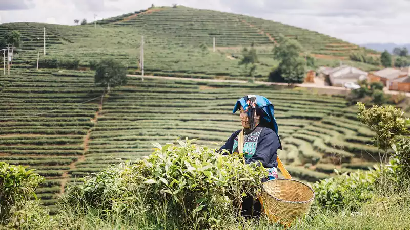 This day is the Torch Festival, the most solemn festival for Yi compatriots, a Yi eldest sister wearing national costumes, picking tea while feeling this wonderland on the clouds. The Yunnan-Guizhou Plateau is the birthplace of tea trees, and for a long time, every time the new tea spits out green, tea farmers on the mountain will work tirelessly to pick the large-leaf tea they are proud of.