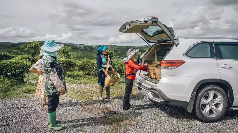 As he spoke, he picked tea, and the bamboo basket of the eldest sister of the Yi ethnic group was quickly full, "We will help you transport the tea back!" Open the trunk of the Highlander, and when the suitcase and flowers have been loaded, you can actually put three bamboo baskets of tea leaves, and drive to the Yi eldest sister's house.