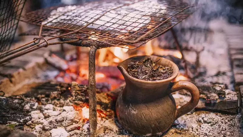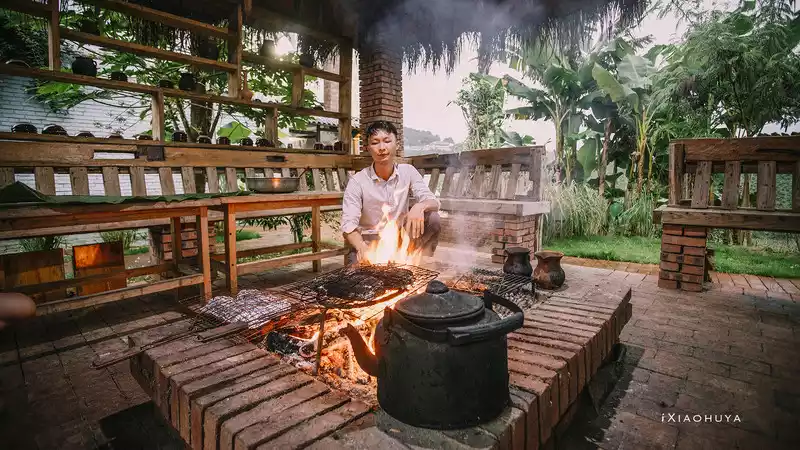 far away, in the tea factory next to the tea mountain, the director has prepared Dai-flavored barbecue, grilled fish, barbecue, roasted tea (tea can also be roasted?) The aroma is fragrant, coupled with the chicken soup stewed with various mushrooms this season, the taste is not too good.