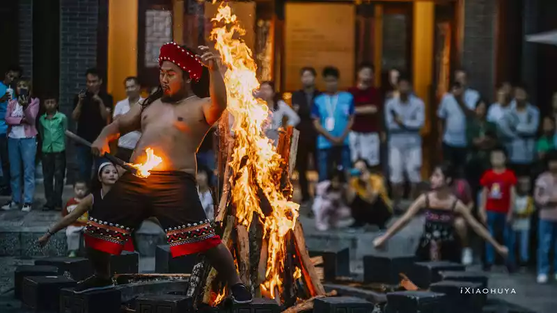 The Yi people worship fire, believing that people are created by fire, and that there is a world with fire. Therefore, on important festivals such as the Torch Festival, we must celebrate the festival around the fire and dance pot village. In the ancient city of tea horses in Pu'er, a lively torch festival is being staged.