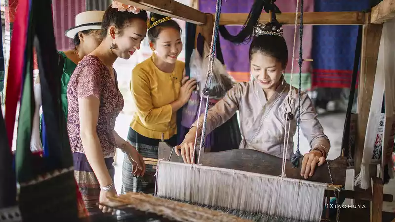 Dai family's whistle dori (girls) are learning the Bayeux Sutra and traditional weaving techniques of the Dai people. Pass on the intangible cultural heritage of the Dai family.