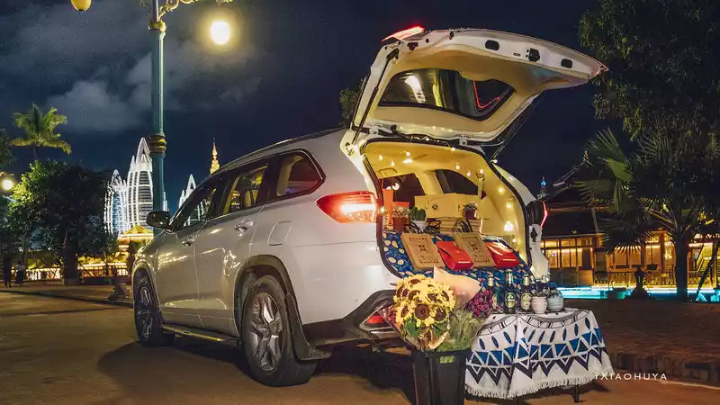 One day in early August, I drove the Highlander in a heavy rain in Kunming, crossed the Tropic of Capricorn, and arrived at Xishuangbanna Dai Autonomous Prefecture, the southernmost part of the motherland, and set up a romantic and grand starlight backpack market with flowers, tea, succulents, handicrafts, cola from Thailand, and beer from Laos collected along the way.