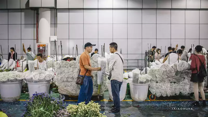 At 8:40 p.m., as soon as the gate of the trading market opened, hundreds of carts pulling flowers entered one after another, and bursts of floral fragrance wafted in. Following the crowd, you can see hundreds of "counters" selling thousands of flowers. Flowers are sold in pounds and cars, and precious flowers in other cities are like cabbage sold in vegetable markets.