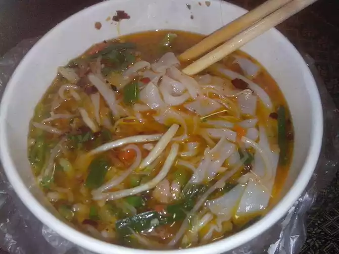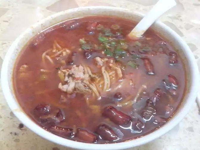 This is the spicy rice noodles eaten at the recommended restaurant, the oil is quite heavy, it's okay, it's okay, it's 7