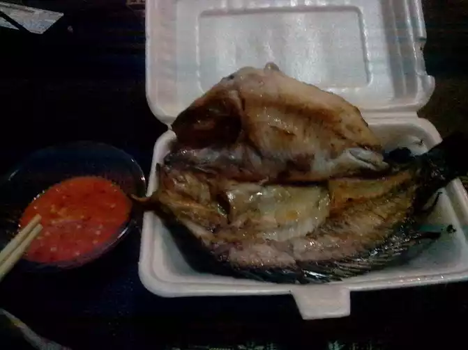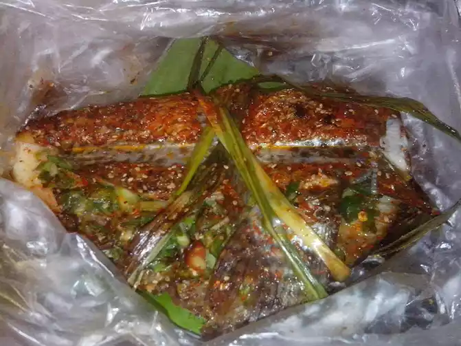This is the fish that has been simmered before and tied with lemongrass and grilled It's also very delicious