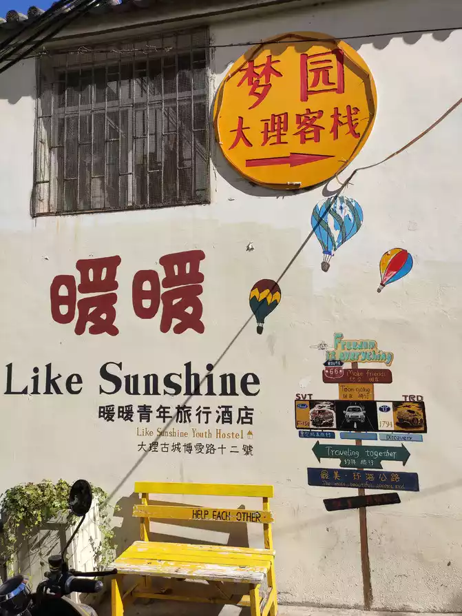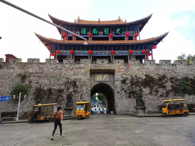 almost missed the shuttle bus to Dali Xiaguan in the morning (train number 1105, fare 82 yuan), but fortunately, the Didi driver took a shortcut, luckily caught the bus, and gave the female driver a small red envelope. It takes 2.5 hours to get to Dali, all the way to the highway, looking at the scenery outside the window, sighing that time flies so fast, today is the sixth day. When we arrived at Xiaguan and the train station, we asked the driver how to get to the ancient city of Dali, and the driver said that he was just going to drive to the bus station of Dali Ancient City to hand over, and as a result, Nice took us to the ancient city, which was quite far from the urban railway station, and the drive took 40 minutes. It takes 10 minutes to walk from the bus station to the ancient city of Dali, pulling the suitcase to make a "gurgling" sound on the street, and there will be many people on the road who pull you to stay in the hotel, deliberately chose the "Nuan Nuan Inn" (belonging to the nature of youth travel, located at No. 12 Bo'ai Road in the ancient city) in the ancient city and closer to the gate of the ancient city, the room layout is simple, and the shower facilities are also very simple, arranged us in the new store, more quiet, which I like more. Compared with some well-known ancient cities in China such as Phoenix Ancient City and Pingyao Ancient City, the ancient city of Dali is much larger, after all, this is the royal city, which is the political, economic and cultural center of Yunnan during the more than 500 years of history of the Tang and Song dynasties. The history of the current ancient city can be traced back to the Tang Tianbao period, and the city of Yangju built by King Ge Luofeng of Nanzhao is its new capital. The tour route of the ancient city is along Fuxing Road, from the south gate to the north gate, with a total length of 1,500 meters, and the road surface is hemp stone pavement, which is the longest main road in the north-south direction of the ancient city. The shops on both sides of Fuxing Road maintain the architectural style of the Minqing Dynasty and are the main commercial streets of Dali Ancient City, with many shops on both sides of the street, dealing in local specialties such as marble carvings, ethnic costumes and local specialties. There is also a foreign street from west to east, which is also very famous, and the ancient city is too big, so it is more reliable to have a bicycle if you have the opportunity. The ancient city has four city gates on all sides, namely the East Gate Erhai Gate (also known as Tonghai Gate), the South Gate Shuanghe Gate (also known as Cheng'en Gate), the West Gate Cangshan Gate, and the North Gate Santa Gate (also known as Anyuan Gate). The city maintains a typical checkerboard structure, with symmetrical north and south gates, and the streets in the city crisscross, known as "nine streets and eighteen lanes". The center of the city is to the west, and the north-south axis is not centered, forming an urban layout with west and east. The staggered east and west city gates adopt the principle of "east, west, north, south, and not center" in Bai architecture.