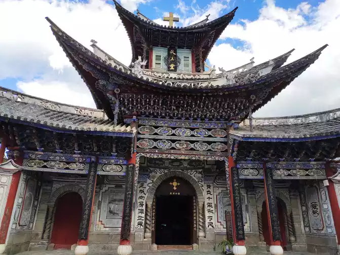 At almost 12 o'clock, after putting away the luggage, go to the south gate, where there are more group tourists, and it is also the starting point of the sightseeing car, close to the south gate visitor center, the sightseeing bus is 35 yuan/person, around the ancient city. The South Gate Tower was rebuilt in 1984, and the city wall was restored on the site of the original city wall in 1998, maintaining the original Ming Dynasty style in architectural style. You can take pictures here, but in view of the fact that there are too many tourists, Li Mengbo did not stop too much, but directly visited along Fuxing Road, both sides of the street are indeed shops, and things are not cheap, a skewer of black pork skewers is not very big, the price is 15 yuan, in view of the need to sacrifice the temple of the five organs, so try to get two skewers. There are also many silverware shops on the street, and they are all written about Cunjia Silver Shop, could it be that it originates from the Cunjia ancestral hall in the ancient city of Tengchong and Shun? The closer attraction is Du Wenxiu's Mansion.Du Wenxiu, the leader of the Yunnan Hui uprising, his family has been in business for generations, he has been a scholar, he was a village tutor, and he is loyal and honest. In 1856, he was rescued from prison by Cai Chunfa, the leader of the Yunzhou Hui uprising, and raised troops in Menghua (present-day Weishan), Yunnan, recruited thousands of Hui Yi people, and conquered Dali on September 16. On October 17, he was elected generalissimo, established political power, announced that he was "at the call of Nanjing in the Taiping Heavenly Kingdom", opposed the narrow concept of the nation, and put forward the slogan of "Lianhui and Han as one, erect the banner of righteousness, expel the Tatars, restore China, cut off corruption, and get rid of the people's water and fire". In 1872, the Qing army attacked Dali, and Du Wenxiu went to the Qing camp after taking poison on December 26, demanding to save the lives of Dali soldiers and civilians, but was killed by Cen Yuying, and the uprising failed. There are still buildings such as the gate of the Shuai Mansion, part of the city wall of the Forbidden City, the gate of the inner hall of the Shuai Mansion, the White Tiger Hall and the wings on both sides. After the failure of the uprising, the governor of Yunnan and Guizhou, Cen Yuying, rebuilt the Shuai Mansion. In 1988, it was repaired and opened as the Dali Museum. At present, it is also the Dali Museum, which mainly displays stone tools, pottery, bronze, porcelain, jade, stone carvings, jade carvings, wood carvings, calligraphy and paintings, etc. Not far from the Shuai Mansion is Wuhua Building. There is a McDonald's at the junction of Fuxing Road and Renmin Road, and after successfully solving the lunch problem, I turned from Fuxing Road to Renmin Road and continued walking. Renmin Road is being repaired, with small shops on one side and local houses and Dali No. 4 Middle School on the other. The Catholic church here is very distinctive, Li Mengbo feels that it is necessary to take a look, and then you can return to Fuxing Road to continue to visit, and I chose to follow Renmin Road to see Erhai Gate, that section of the road has no scenery, and it is far away, and Erhai Gate is all surrounded by small vendors, which is not interesting. Speaking of this Catholic church, the team guests do not come here, and there are almost no individual guests, but it is a good building. The church is located in a quiet alley in the ancient city of Dali, a church that combines our country's tradition and Bai architectural art style in a simple way - the Holy Trinity Hall. The architectural characteristics of the church are unique, and it is a national treasure that integrates the local Bai cultural characteristics, Han and Western architecture and other ethnic characteristics. It is famous at home and abroad for its unique style of architectural structure modeling, exquisite carving art, and fusion of Chinese and Western architecture. The church was built in 1927 and completely renovated in 1983, the church has a history of more than 90 years, about 16 meters high, the bottom floor to the bell tower has a total of four floors, about 34 meters long from east to west, about 15 meters wide, the church sits east to west, the cornices are decorated with Bai style carvings and traditional Chinese paintings, and the cornices extend beyond the foundation to four and a half meters. The interior area is 600 square meters and can accommodate more than 500 people. The church is a Bai temple style, the altar in the hall is made of local marble, and the church is carved and painted inside and out, with a strong Bai architectural style. In 2002, with the care and support of the party and the government, the Dali Church was once again comprehensively repaired. The church looks like a roaming dragon from the front, with its head held high and its tail raised, reflecting the strong traditional Chinese cultural thought - the descendants of China, the descendants of the dragon; From the side, it looks like a huge ship, symbolizing that the church is anchored like Noah's Ark and sails away, bringing hope, justice, peace and love to mankind. Walking into the church, it is like walking into an ancient gallery and museum, the north wall is covered with ancient and excellent Western paintings, the south wall is inlaid with handsome Chinese landscape ink paintings, the front is three paintings, the middle one is a miniature of the church, recording its history and style.