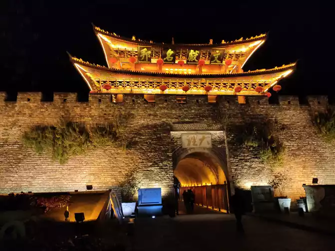 After walking a long way, I arrived at Erhai Gate, turning from Erhai Gate to Yu'er Road, and walking in the direction of Fuxing Road, where the road surface of Yu'er Road is also wide and can pass buses. Turning to Fuxing Road, this is another section of pedestrian street, one side of the street is being repaired, here is less crowded than the first half of Fuxing Road, and you can climb the North City Tower (also known as "Anyuan Building"), overlooking the entire ancient city, the North City Tower was repaired in September 2016, the city tower closed at almost 17:30, and was called down the city tower by the uncle who closed the door. The ancient city is also lit up at night, and it is also very fun to walk along Fuxing Street, in addition, it is also a good choice to go to Foreigner Street to listen to music and clubbing.
