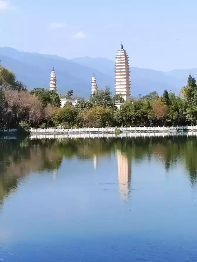 After breakfast, Didi took a taxi to Nanjian Bus Station and took a minibus back to Dali Bus Station for 32 yuan. Because of the previous miscalculation of the line, the three towers of Dali did not go. I originally thought that the three towers of Dali were located in the city center, but later found that the three towers were located near the ancient city, so I rented a Volkswagen Lavida and continued to drive. The tickets for the three pagodas of Dali Chongsheng Temple are not cheap, they cost 74 yuan, because the time is relatively urgent, Chongsheng Temple did not go, only went to the Three Pagodas Reflection Park and the Three Pagodas, and Chongsheng Temple has never entered. The Three Pagodas Reflection Park is located 1 kilometer south of the Three Pagodas of Chongsheng Temple in Dali, Yunnan, the park faces north and south, backed by the Three Pagodas, named after the majestic posture of the three pagodas reflected in the pond water in the park. The reflection of the three towers was particularly clear, the stars in the water around the tower shadow flickered, and the jade rabbit moved lightly, and people suddenly felt that the sky and the earth were only in one thought. Three Pagoda Reflection Park does not sell tickets separately, and must be purchased together with Chongsheng Temple. The landmark three pagodas and pagodas are secretly crafted. The three pagodas of Chongsheng Temple are the symbol of Dali's "famous documentary state", and they are also the royal temples during the Dali Kingdom period, and the largest ancient temple in the history of Dali. The big tower is also known as the Qianxun Tower, the local people call it the "Wenbi Tower", the three towers stand together, the Qianxun Tower is in the center, and the two small towers guard the north and south, majestic and spectacular. There is harmony in the changes of the three towers, and there is unity in the opposition, which is dependent on each other and natural. This picture is excellent: behind is the snow-covered Cangshan Mountain, and in front is the rippling sea of bait, which is integrated with "Yu'er Yincang", showing a natural and elegant oriental beauty. The three pagodas of Chongsheng Temple were built during the period of King Nanzhao (824-859 AD), and the large pagoda "Qianxun Pagoda" was first built, with a height of 69.13 meters, which is a square eaves brick tower with a total of 16 floors. Later, small towers in the south and north were built, both 42.19 meters high, and were a pair of octagonal brick towers, both of which were 10 levels. In addition to the Buddhist preaching that you can become a Buddha, there is another important reason for the construction of the three pagodas, which is that Dali was "flooded in the marsh country" in ancient times. It is said that in ancient times, three towers were built, using the method of building a layer of soil to build a tower, and after the tower was repaired, the soil was dug out layer by layer to make the tower visible, so there was a saying of "piling up soil to build a tower" and "digging soil to build a tower". The bridge built when the tower was built was as high as a hill and was more than 10 miles long. After the construction of the three pagodas, the grand Chongsheng Temple was built. Chongsheng Temple was once famous for its five heavy weapons (three pagodas, Nanzhao Jianji bell, rain copper Guanyin statue, three holy golden statues, and "Buddha capital" plaque), but Chongsheng Temple and the other four heavy weapons were destroyed by wars and natural disasters in successive dynasties. The current Chongsheng Temple was newly built in 2005, and the reconstruction project of Chongsheng Temple with a total investment of 182 million yuan has been completed.