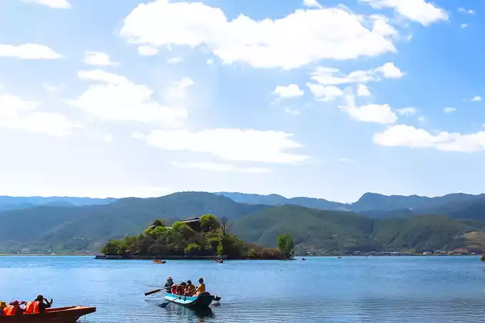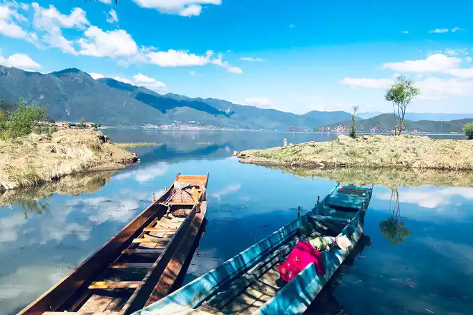 in front of you Itis still a bright spring, butterflies wear flowers, dragonflies touch the water, and Lugu Lake is also quiet and comfortable, which is the most beautiful season. There is a clear sky and leisurely clouds here, like a distant dream, intoxicated in this fairyland.