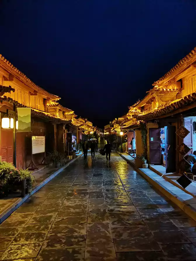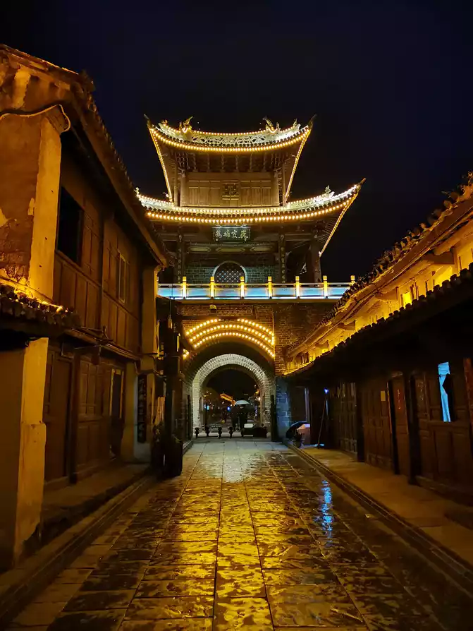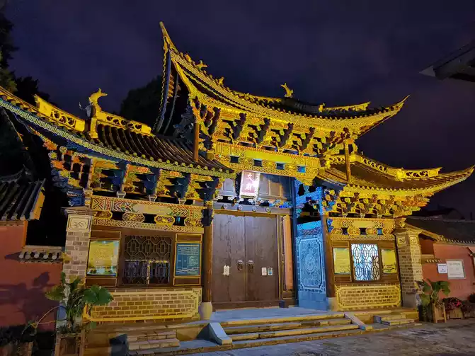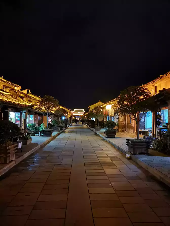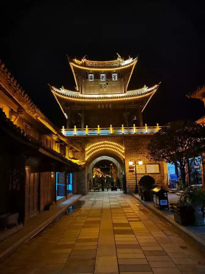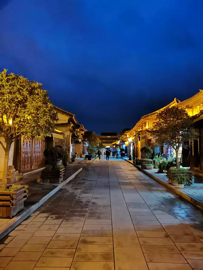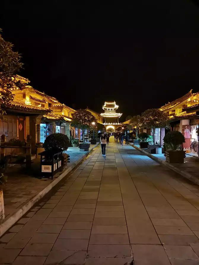 lights are dim, and the night view of Weishan Ancient City has a unique warmth and wild fun.