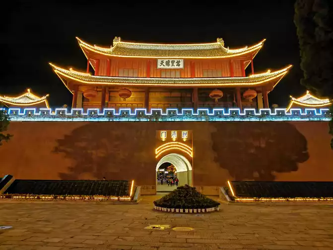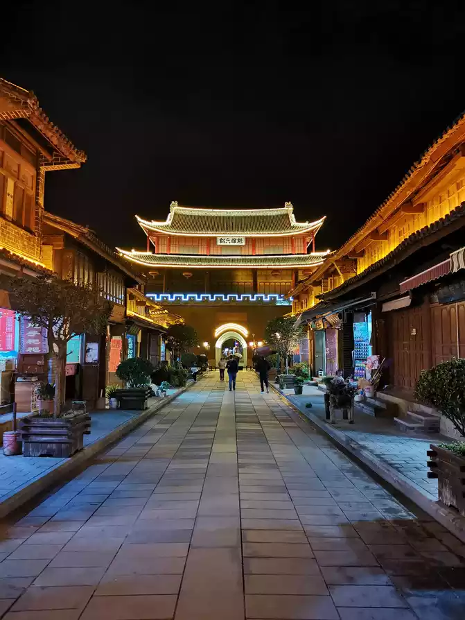 After dinner, take advantage of the short gap before departing for Dali to stroll through the streets of Weishan Ancient City at night, and go south along the main street from Gongchen Tower to Xinggong Tower.