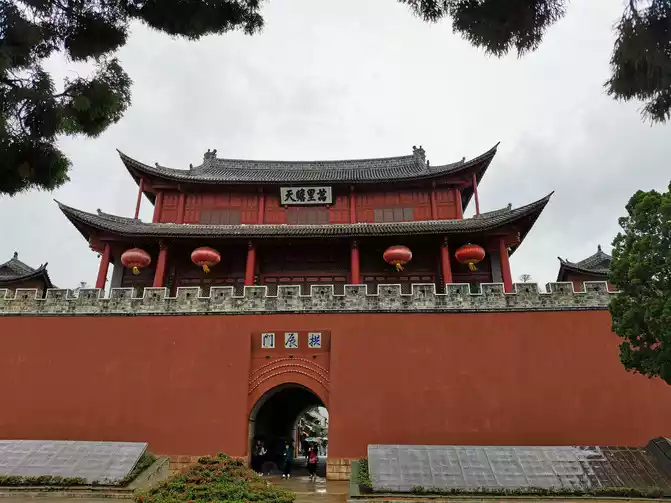 Gongchen Building is a civil structure, The lower tongue city wall is 8.3 meters high, 23.4 meters high, 41.7 meters long, and 24.8 meters wide, supported by 28 large columns that embrace each other, and is majestic on all sides.