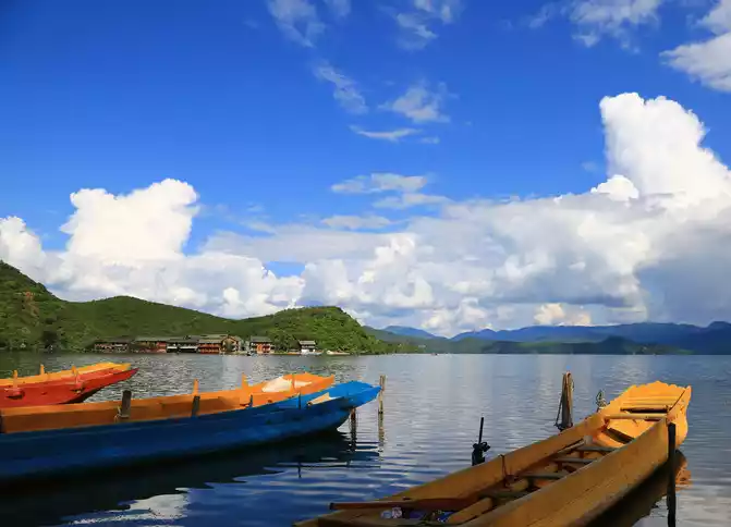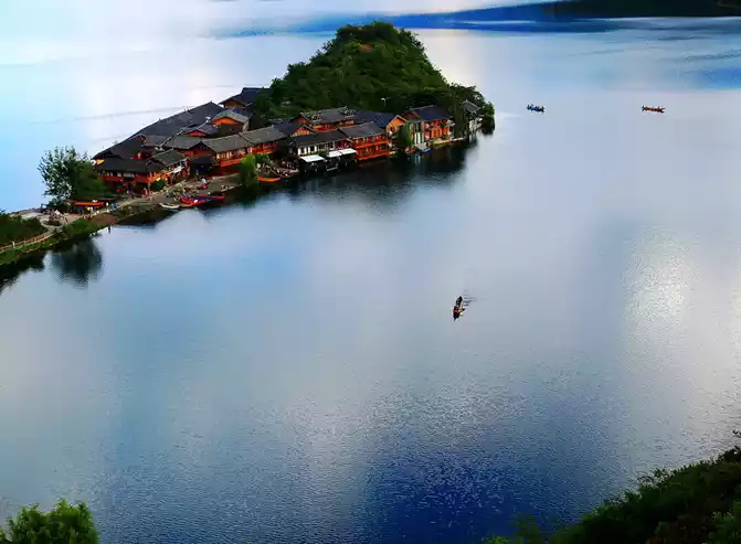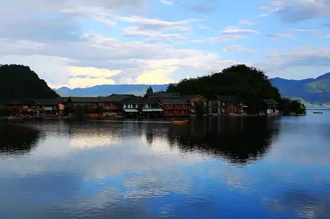 The only path on the peninsula leads to the outside world, the inn is facing the lake in front and behind, standing side by side with the other, two quiet wine bars, with resident singers, and the songs are quiet and gentle tunes. Without the noise and hustle and bustle of passing tourists, if Lugu Lake is outside the world, then here, it is a paradise deeper in the world, choose a room near the water, push the window to see the lake, look at the blue sky and white clouds in a daze, everything is too beautiful.