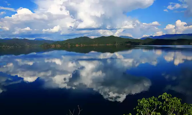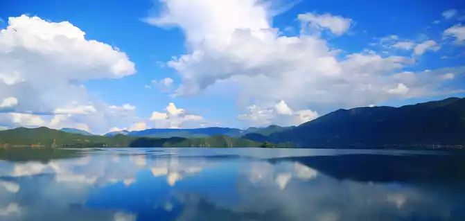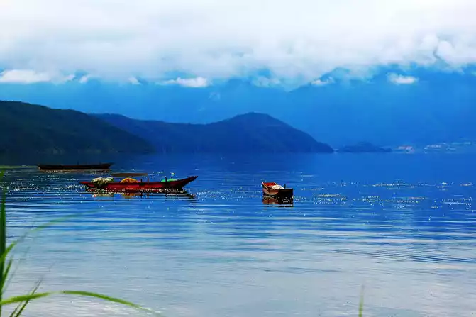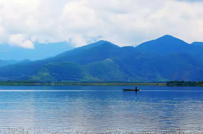 When the wind blows, the clouds on the lake suddenly disperse and move, and the fine water patterns are engraved on the shadows of the clouds, and the picture has a new story, perhaps about the clouds and the lake, or the lake and the sky, or the clouds and the sky, some beautiful or sad stories that cannot be explained endlessly, because the wind rises, falls with the wind, and falls into the heart of the lake, the shadow of the clouds, and the arms of the sky. Dreams are dreams, and the boatman's urging voice below roughly pulls us back to reality.