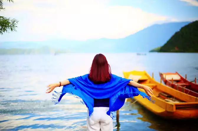 spread your arms and use the breeze to wash away your worries and thoughts; Embrace your dreams and let the lake and mountains be collected.