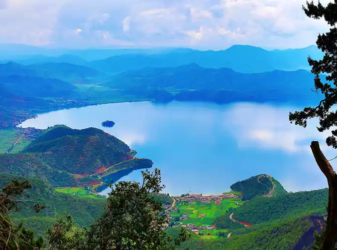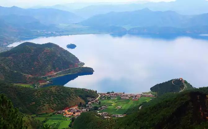 I took a day to go to Fairy Mountain. It was the legendary fairy who transformed into a mountain by the lake for love, looking low from the Rig Peninsula, waiting at the foot of the mountain, looking up, quickly hiding the word low, standing tall in the spirit, where it still looked like a small hill in the distance, obviously a high mountain. Sitting on the ropeway up, after climbing for a while, I went up to the top of the mountain, where the panoramic view of Lugu Lake was unobstructed, the lake was deep and quiet, obviously at a high place, but the sky suddenly moved far away, blending with the lake in the distance.