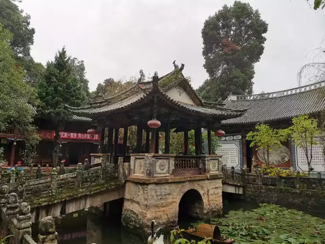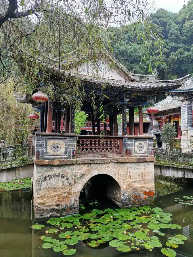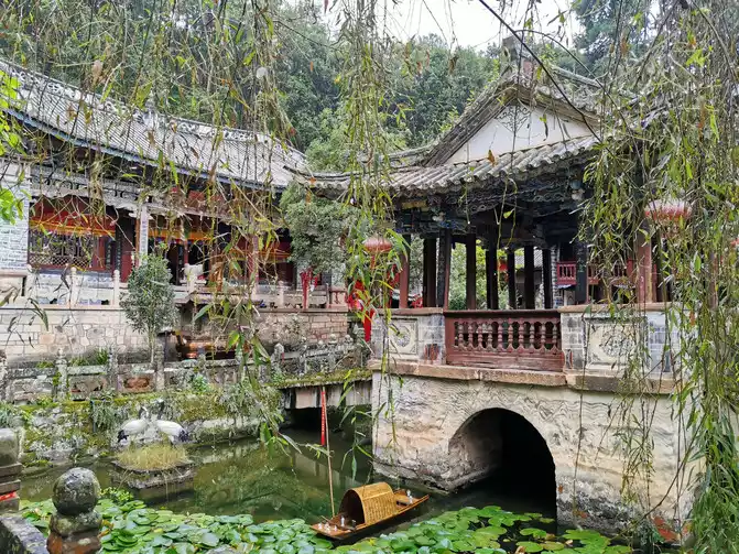 There is a crescent-shaped divine spring well in Wenchang Palace, and it is said that Meng You, the brother of Meng Huo, the Yi master at the end of the Han Dynasty, once lived here to practice. When Zhuge Liang captured Meng Huo seven times, because the soldiers mistakenly drank dumb spring water and could not speak, Zhuge Liang personally went to the palace to visit Meng You's antidote to save the soldiers.