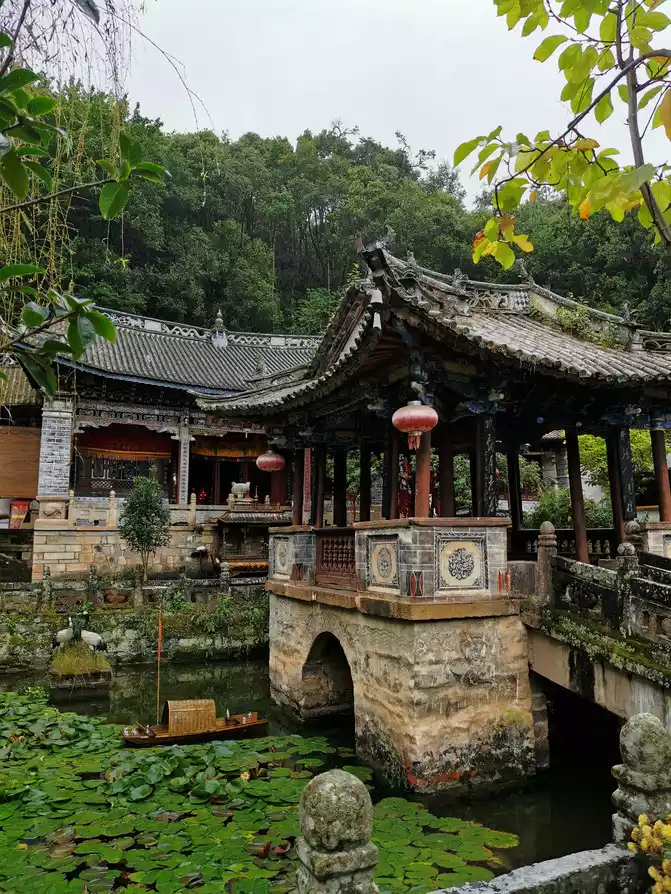 There are mural carvings of the Bodhisattva Dot Xinuluo in the temple, but there is also a Taoist legend of "Laojun Dot Xinuluo" in Weibao Mountain, which is said to be the King of Nanzhao, and after his death, he was named the land lord of the mountain, becoming the "mountain god" of Yunnan Taoism, that is, a main god of Yunnan Taoism. These shows that in the process of Taoism and Buddhism being introduced to Yunnan, the local primitive religions of Yunnan were integrated, rooted in the primitive religions of the Yunnan ethnic group, absorbed nutrients, and became one.