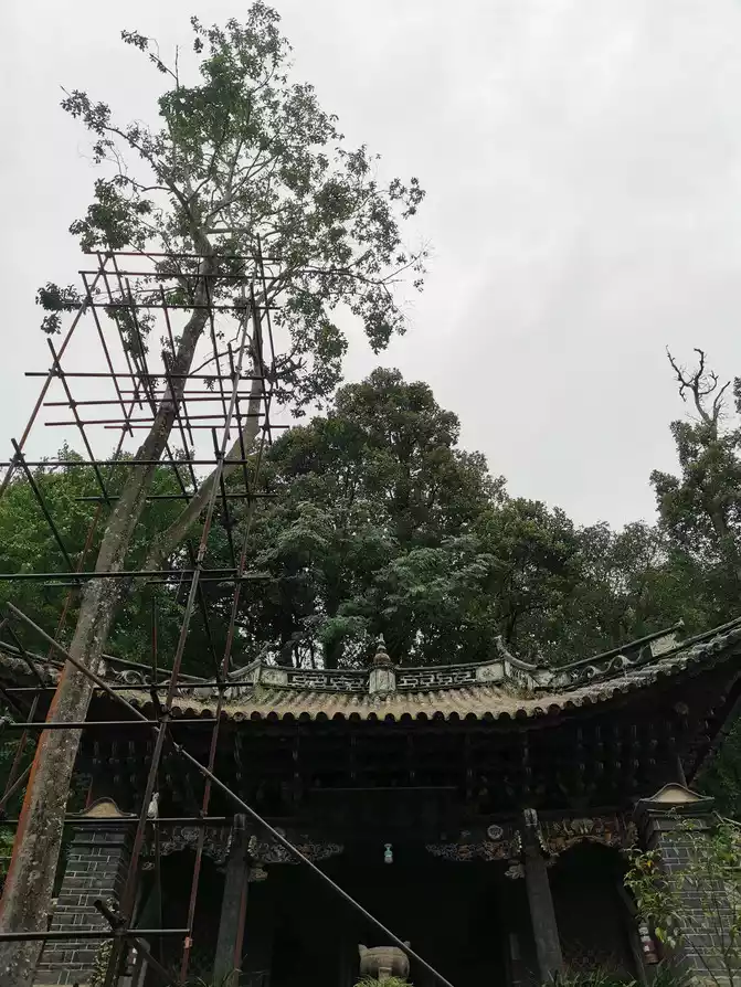 This tree is a "laurel leaf silver red" camellia tree planted in the late Ming and early Qing dynasties, because it towers over the house and is close to the main hall, and when it blooms, it is full of red flowers and shines on the red hall, so it is also called "Zhaodian Hong". If the flowers bloom in early spring and February, the ancient camellia blooms into hundreds of flowers, the flowers are as large as bowls, red as rouge, and the camellia is red, which is a spectacle.
