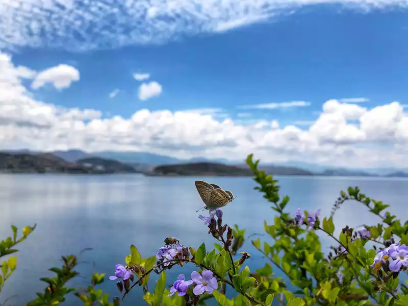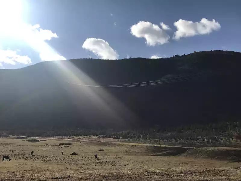 the rocks in the distance, like crystal clear teardrops. At the lakeside, you can occasionally see the yellow thread of the living Buddha praying for rain hanging in the lake by local Tibetans. In the eyes of Tibetans, the lake water is sacred and cannot be desecrated. So, never touch the water with your hands and feet, let alone shout!