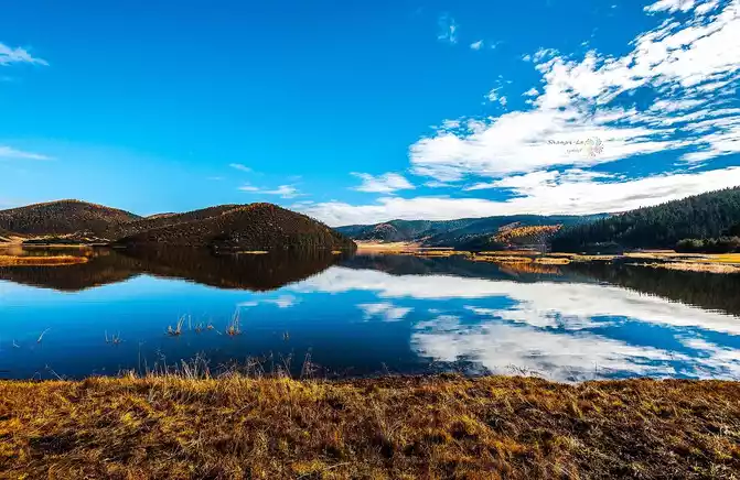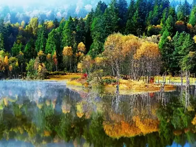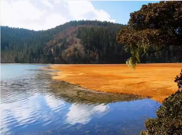 It's already cold, and I had a dream. In the dream of Shangri-La, the forest is dyed, and the pure Pudacuo wears colorful winter clothes, colorful. The rustle of fallen leaves covers the ground, and walking feels like a soft colorful carpet.