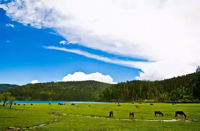 In the Yunnan Pudacuo National Park System Pilot Zone, mountains and lakes, snow-capped mountain meadows, primeval forests, Tibetan customs and Buddhist culture blend with each other. This is the harmonious development path that Pudacuo National Park has explored for more than ten years.