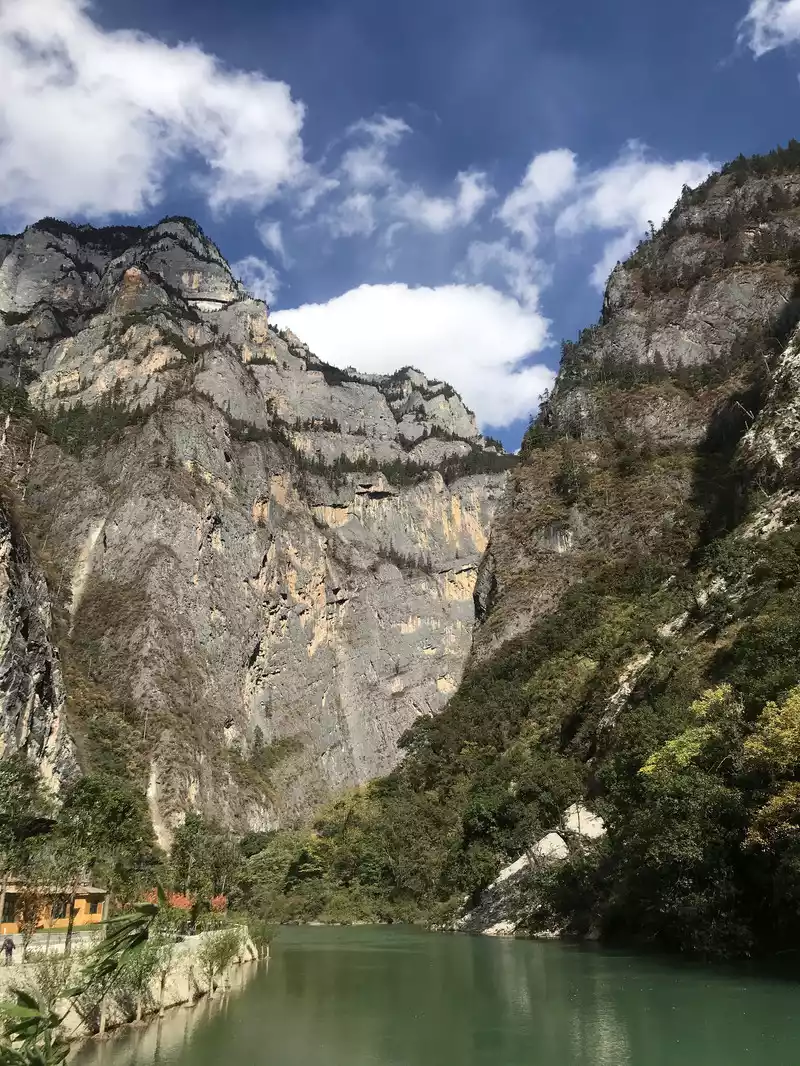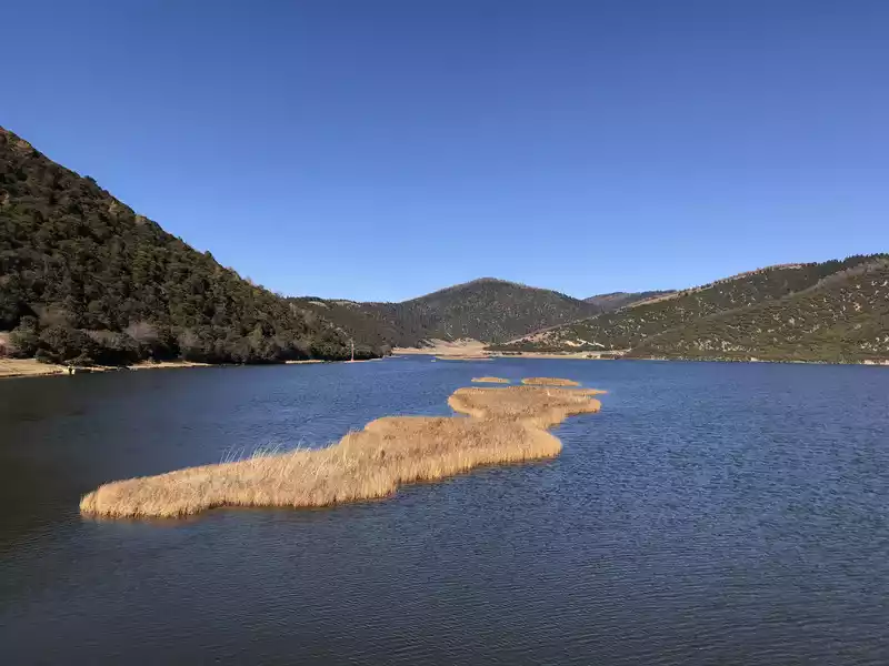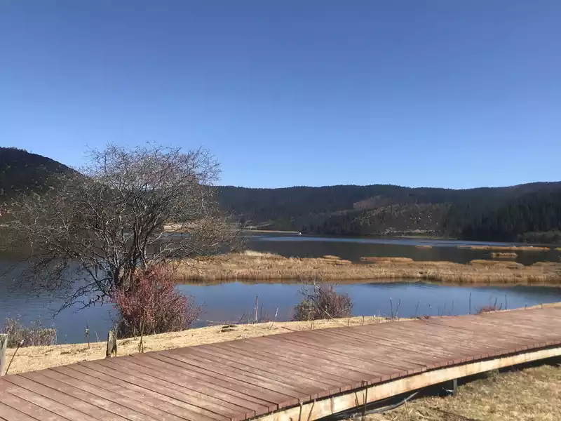 The manor has Tibetan-style fried highland barley and yogurt residue, which is like the fried noodles I ate when I was a child, and the yogurt residue tasted bitter. After breakfast, we set off for Pudacuo, and this time the mountains along the way were no longer steep and steep, but became gentle and dense. The car stops at the entrance of the scenic spot, buys tickets, takes a bus, walks half a circle along the lakeside plank road, and returns by boat, which is the standard itinerary for tourists. This season misses the most beautiful time, the mountains and lakes are still beautiful, the sky and water are blue, the vines and trees are lush, and the beauty of Pudacuo surpasses Lake Lucerne in Switzerland. However, the traces of man-made are not as good as the natural landscapes on the road, and the richness and pristine ecology of the Napa Sea is superior.