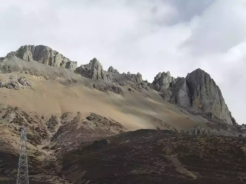 The top of Baima Snow Mountain is relatively flat, the wind howls on the top of the uninhabited mountain, and the mountain on one side is exposed with loess and rocks, like the desert Loulan; On the other side, the soothing mountain bag is covered with low vegetation, and a small amount of snow accumulates on the top of the mountain, giving you a sense of the Alps again.