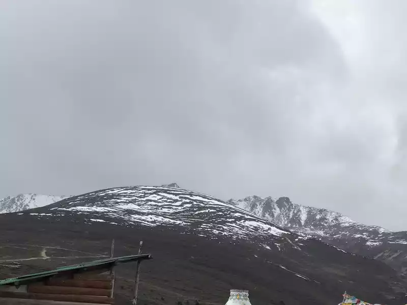 Hurriedly set off for Baima Snow Mountain, it was already past four o'clock in the afternoon, snowflakes floated in the air, and Baima Snow Mountain was shrouded in clouds and mist, and it was no longer possible to see its true face.