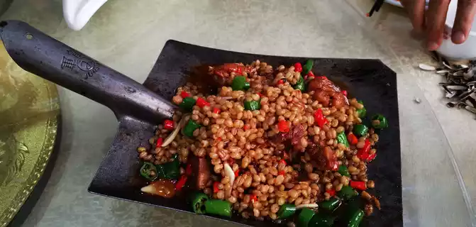 For dinner, I drove around and finally enjoyed it at this restaurant called Yi Pian Red Earth Restaurant. I ordered a few dishes that were not named, of course, some were delicious, and some were not used to it, but I had a great time.