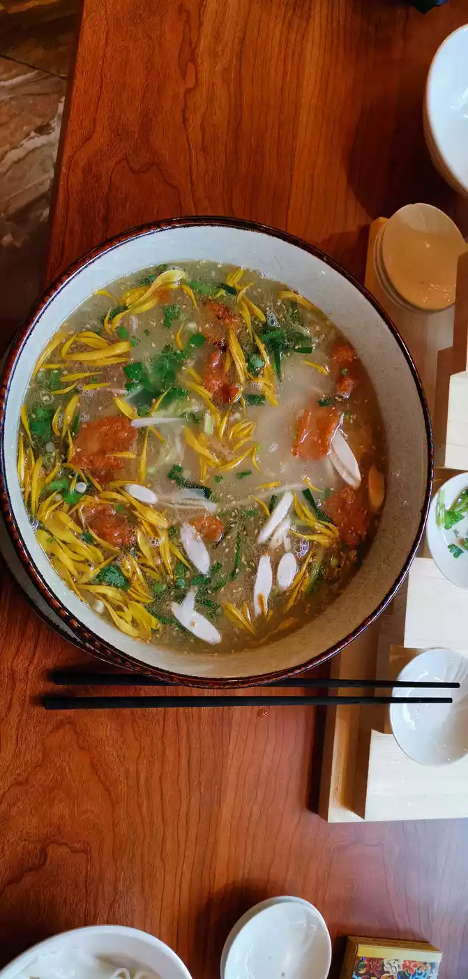 bowl is a particularly large sea bowl, a bit like a hot pot, with many cups and plates and clean, meat and vegetables are properly matched, rice noodles are thick and optional, and there is no limit, taste slowly, For fear of breaking the artistic conception, such delicious food will never be forgotten.