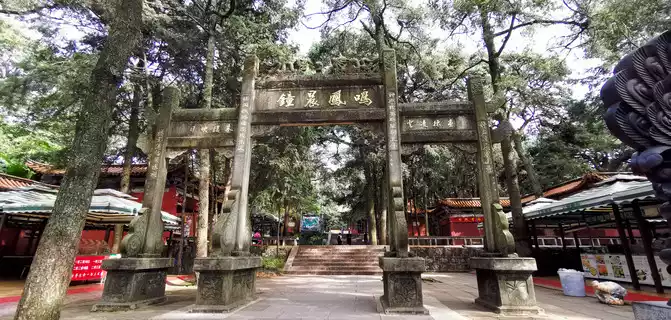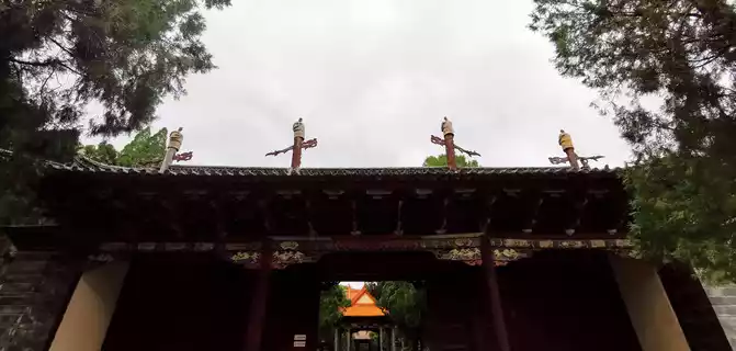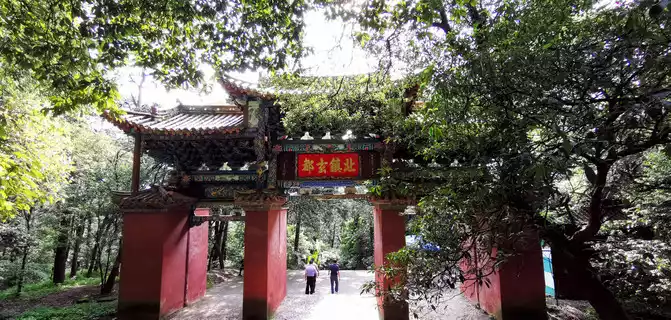 Behind the archway, there are four masonry bases laid out horizontally in the east-west direction, and the archways with civil and wooden roofs are also nine meters high, inscribed with "De Pei Tiandi", "Dao Guan Ancient and Modern", " The sanctuary is here", "the virtuous pass is close to admiration".