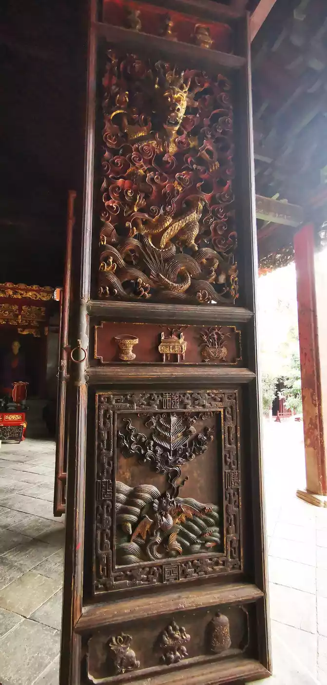 The 22 lattice doors on the front are carved with birds and beasts, hollow three-dimensional, and different shapes.